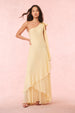 Dressed to impress in the Alliara Gown. Designed in a chiffon fabric, this stunning bohemian-inspired event gown features a one-shoulder and a bias cut. The flirty slip is slinky and cascades to asymmetrical tiers. The dress includes a side seam zipper.