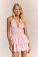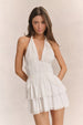 Our favorite Deanna Halter Dress returns for the season. This low-cut convertible halter ties in a generous bow at the neck and be crossed at front. Below a wide smocked waistband, the skirt flares to smaller details at the hips and two ruffled tiers. Pair your mini dress with our heritage Avignon Crop Cardigan.
