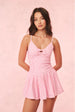 Game, set, mini. The Hubert Dress returns in our signature floral prints. Designed with a lightweight, breathable fabric, this active dress features built-in shorts for functionality, bra cups at the bust, functional pockets, princess and a center front seam. This sporty mini has thin spaghetti straps, a bow detail at center front, and an airy ruffle skirt.
