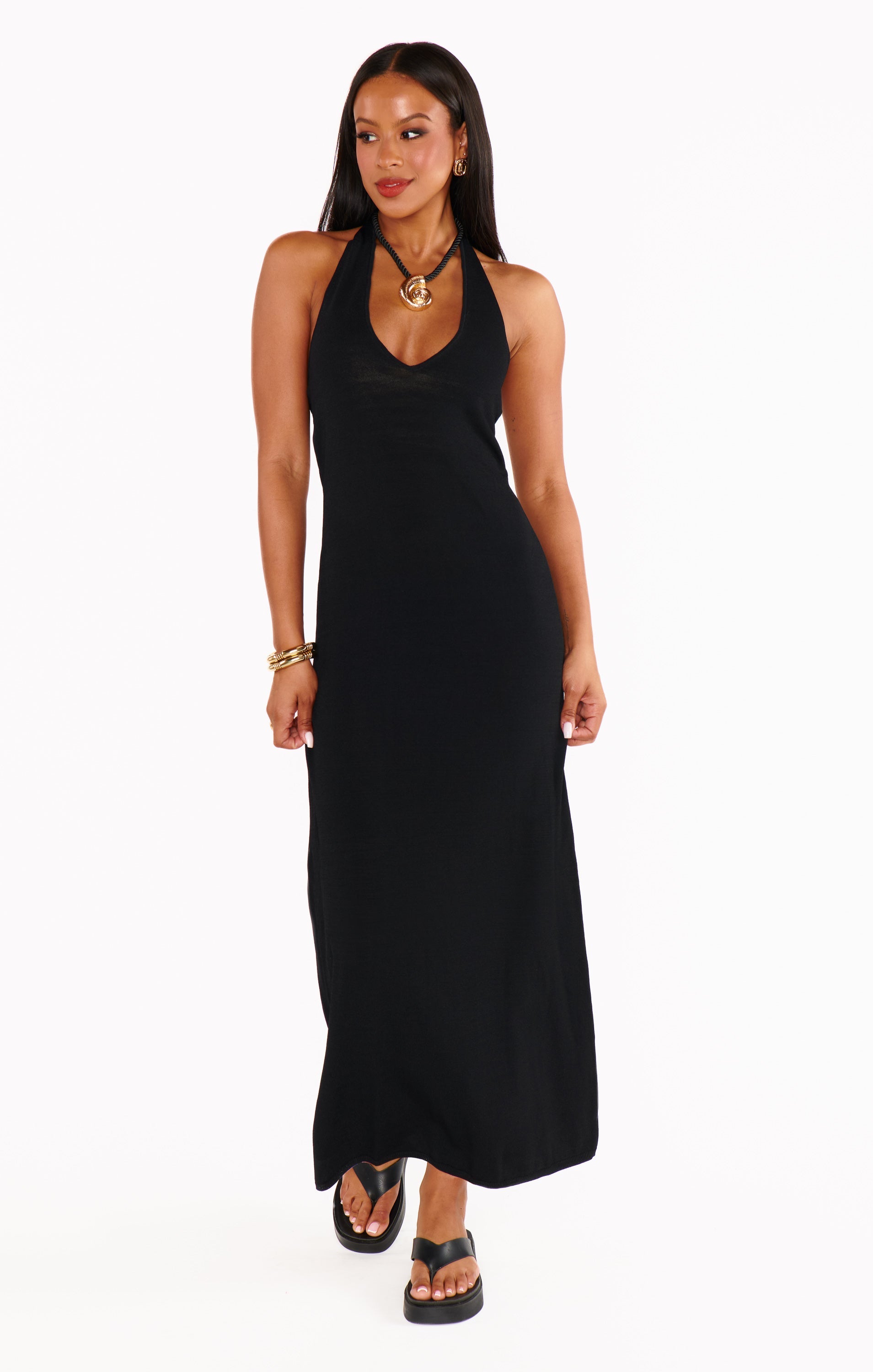 Say hello to warmer days in the Kate Halter Dress! Made from lightweight knit in classic black, this halter is perfect for layering over your favorite swim or dressing up with heels for a sunset dinner.