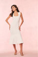 Introducing the Leigh Dress. This stunning bodycon dress is designed from a stretch pointelle knit fabric with intricate, tiny scallop texture woven throughout the pointelles creating a beautiful texture. The dress begins with a square neckline that flows to a slim fitted dress and skirt that flares at the hem for a feminine finish.
